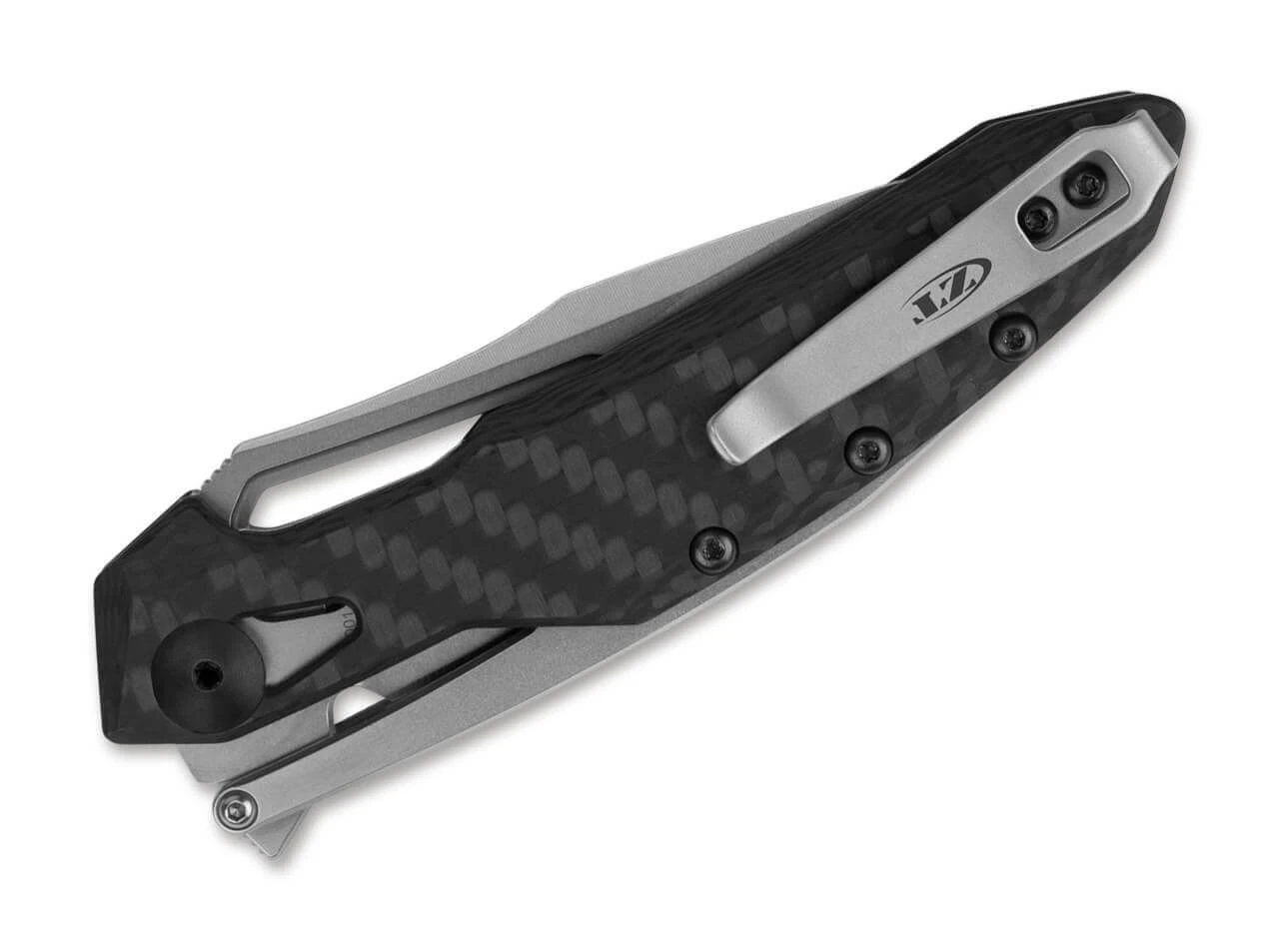 Der 0990 basiert auf dem preisgekrönten Zero Tolerance 0999 und ist eine Weiterentwicklung dieses legendären Messers. Trotz seiner skelettierten Struktur gibt sich der Linerlock Folder zuverlässig stark. Andere Elemente sind eine Hommage an das ursprüngliche 0999, darunter eine freiliegende „schwebende Brücke“ im oberen Bereich des Griffs, Kohlefaserschalen mit einer vorderen Stahlplatine und Aussparungen an Klinge und Klingenachsschraube. Anstelle eines ZT-Logos auf der Klinge selbst ist der Schriftzug „Zero Tolerance“ dezent in den Backspacer eingeprägt. Die Klinge aus pulvermetallurgischem CPM 20CV bietet eine hervorragende Schnitthaltigkeit und öffnet geschmeidig dank der KVT-Kugellager. Mit Deep-Carry-Clip (Tip-Up/r). Made in USA.