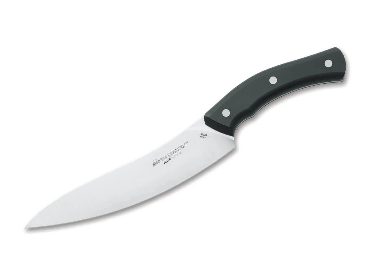 Die Küchenmesserserie Arne von Jens Ansø kombiniert gekonnt dänisches Design und italienische Lebensart. Die schön geschwungenen Griffe warten mit einer perfekten Ergonomie auf und erlauben langes ermüdungsfreies Arbeiten. Die Vollerl-Messer sind aus Sandvik 12C27 gefertigt und hier anstelle der Ziricoteholz-Beschalung mit robustem HPL-Kunststoff ausgestattet.
