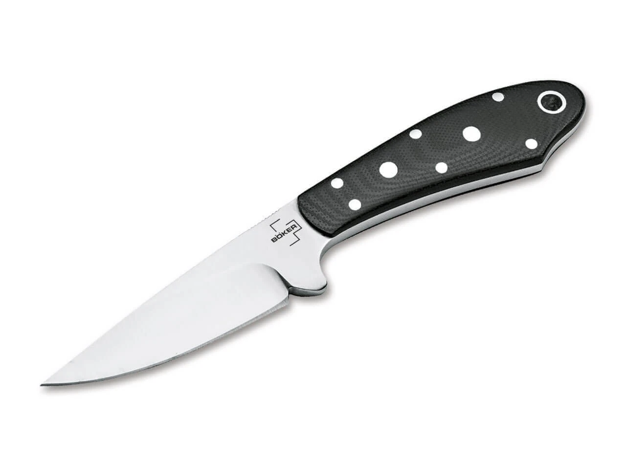 Haken und Platte verhindern, dass die Scheide beim Ziehen des Messers ebenfalls aus der Tasche rutscht und gewährleisten so, dass das Messer stets einsatzbereit ist. Zudem lässt sich das frei mitführbare Backdrop dadurch genauso komfortabel und diskret tragen wie ein Klappmesser. Das handliche Backup-Messer ist mit einer satinierten Klinge aus D2 und Griffschalen aus schwarzem G10 ausgestattet, die mit dekorativen Nieten versehen sind. Die ergonomische Fingermulde und Riffelungen im Bereich der Daumenauflage erhöhen die Arbeitssicherheit. Mit verstärkter Fangriemenöse.