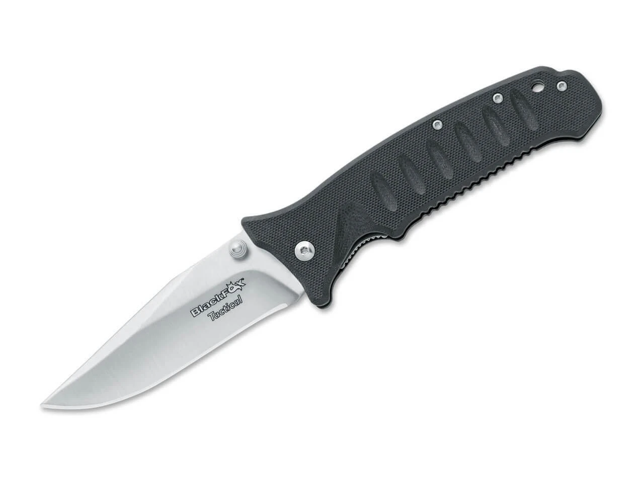 Mit der federunterstützt öffnenden Klinge ist das Taschenmesser BF-114 schnell in Einsatzbereitschaft versetzt. Die Gestaltung des Griffes mit dem beidseitig angedeuteten Handschutz ermöglicht eine sehr sichere Handhabung bei den verschiedensten Arbeiten. Griffiges G10 und gefräste Griffrillen tragen ihren Teil dazu bei. Mit Clip (Tip-down). Die Lieferung erfolgt mit einem Nylon-Gürteletui.