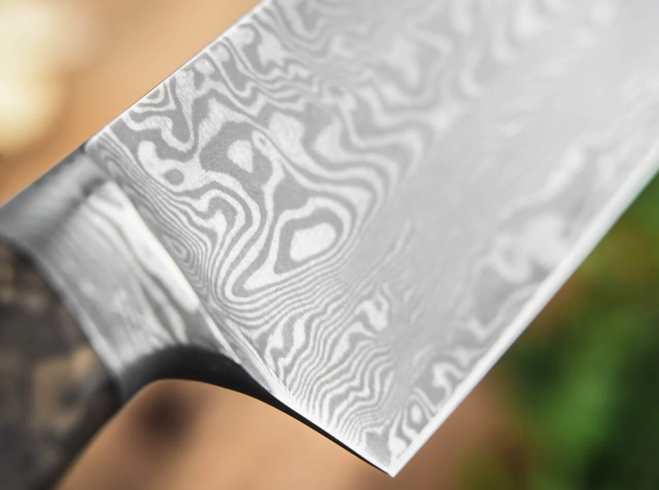 Geformt von den unbändigen Kräften der Natur; geprägt von den rauen Küstenfelsen der Biskaya – das Böker Biscaya Damast Chefmesser bündelt die Macht der Elemente zu einer unvergleichlichen Performance in der Küche. Ausgestattet mit einem naturgewaltigen Griff aus stabilisiertem Wurzelholz und einer kraftvollen Klinge aus Damast ist das Kochmesser nicht nur ein begehrtes Sammlerstück, sondern auch der verlässliche Fels in der Brandung für sämtliche Schneidaufgaben beim Kochen. Die handgeschmiedete, rostfreie Klinge aus Wildem Damast überzeugt nicht nur mit ihrer hohen Zähigkeit und Härte (60 HRC), sondern untermalt die gnadenlosen Bedingungen an der Steilküste mit ihrer stürmischen Struktur. Das geschmiedete Spaltstück aus 150 Lagen Damast wird bei uns in Solingen bis zur Rotglut erhitzt und durch einen zwei Tonnen schweren Fallbär im Gesenk in seine wunderschöne Form geschlagen.