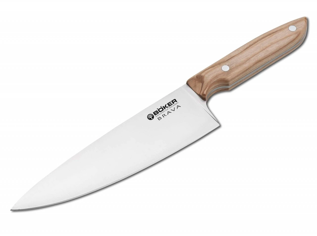 Für diesen anspruchsvollen Entwicklungsauftrag in der eher konservativen Welt der Küchenmesser haben wir den jungen Messerdesigner Thomas Krug gewinnen können. Sein Entwurf präsentiert sich stark funktionsorientiert und trotzdem mit zeitloser Formgebung. Die traditionell gestalteten Klingenformen, gefertigt aus bestem Solinger Chrom-Vanadium- Molybdän Edelstahl (X50CrMoV15), harmonieren wunderbar mit der modernen, ergonomisch optimierten Linienführung der Griffschalen. Per CNC Technik werden die Griffschalen mit äußerster Präzision für eine perfekte Handlage gefertigt. Auffallend ist die speziell entworfene Daumenauflage am Übergang zur Klinge. Hierdurch wird das bei Profiköchen sehr beliebte „Vorne-Greifen“ des Messers zur exakten Führung der Schnitte erheblich erleichtert. Der edle Schimmer der fein gemaserten Olivenholzgriffschalen verleiht den hochwertigen Schneidwerkzeugen eine attraktive Leichtigkeit und gewährleistet eine äußerst angenehme Haptik im Einsatz. Die notwendige Stabilitaät wird durch die Vollerlbauweise garantiert. Nach alter Solinger Tradition werden die Klingen dünn ausgeschliffen und blau gepließtet. Auslieferung mit Echtheitszertifikat.