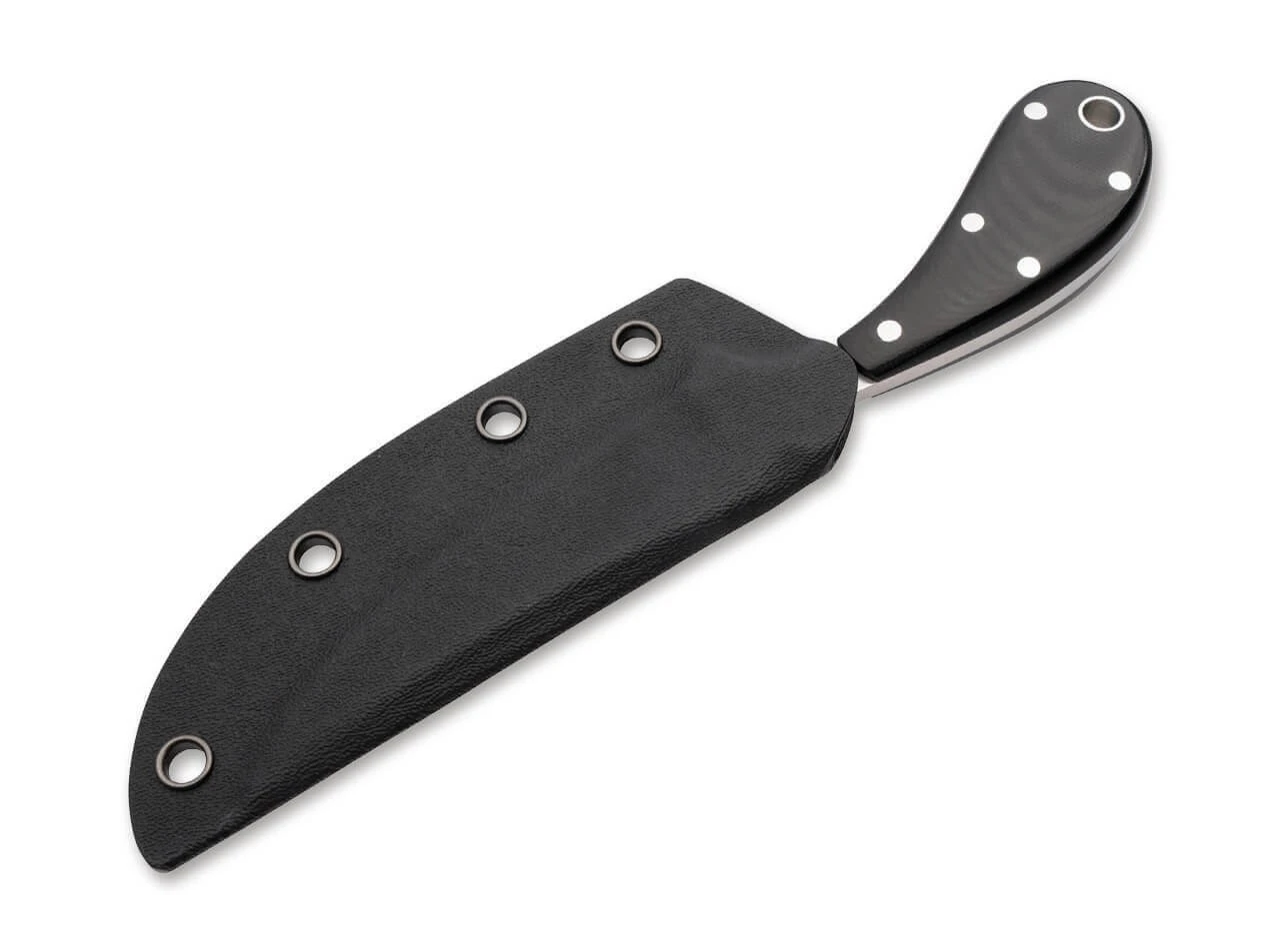 Poesie in Stahl gegossen, verfasst in geschwungenen Linien als Ausdruck schöpferischer Leichtigkeit. Mickey Yurco lebt die Philosophie des Messers in seinen Entwürfen und präsentiert mit dem Epic ein feststehendes Messer epischer Natur. Ausgestattet mit einer schnitthaltigen Klinge aus D2 eignet sich das kompakte und in Vollerlbauweise konstruierte Epic hervorragend als frei zu führendes EDC (Klingenlänge 9,4 cm) sowie als Bird-and-Trout-Messer für zahlreiche Outdooraktivitäten als auch als Vespermesser. Auffällig ist der kurze und tränenförmige Griff, der dank balliger G10 Schalen eine heldenhafte Handlage verspricht und das Messer dadurch sehr gut am Gürtel getragen werden kann. Die fünf Nieten am Griff sorgen für Stabilität und ein harmonisches Bild. Lieferung mit passgenauer Kydexscheide und Gürteladapter.