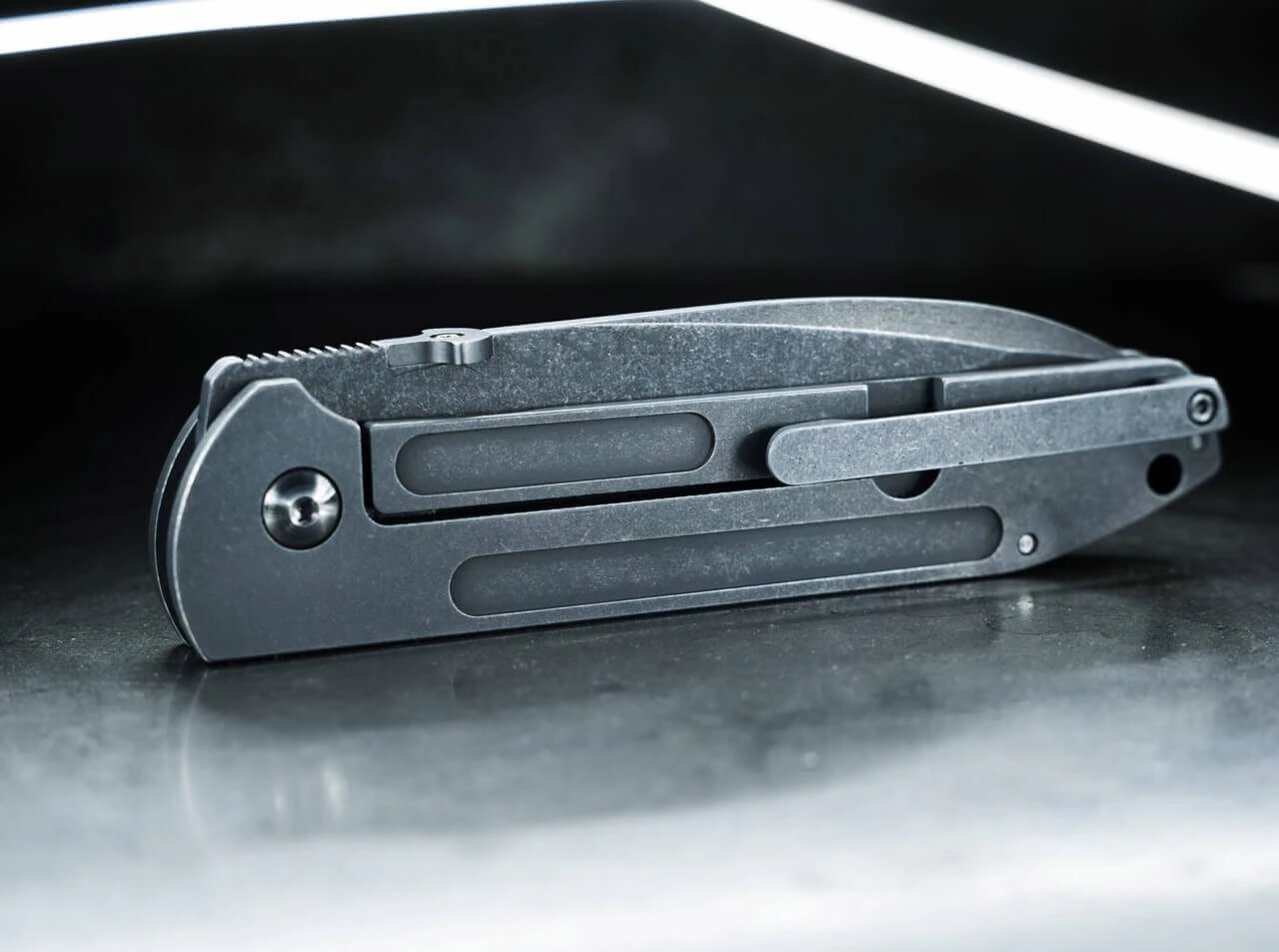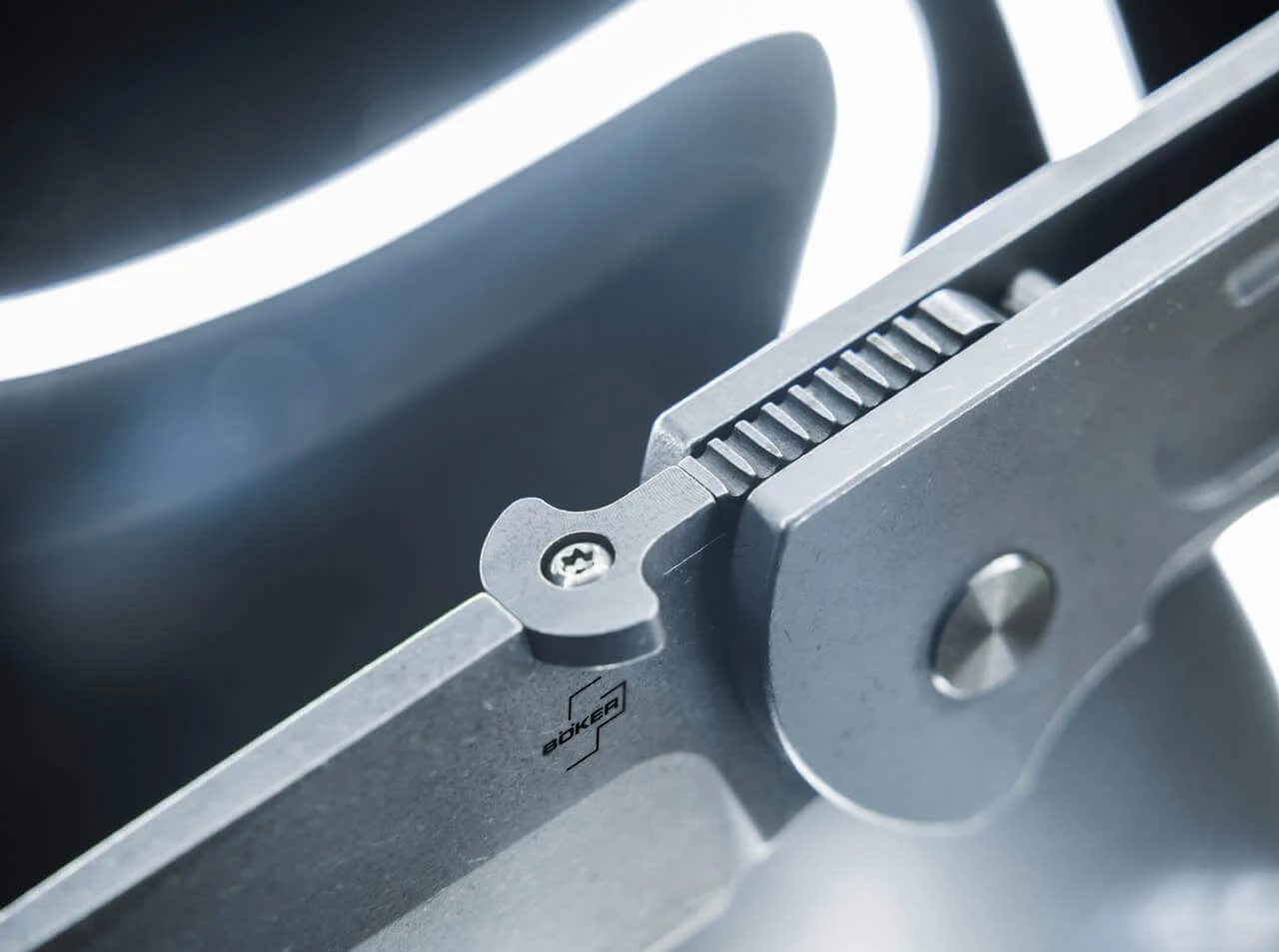 Der Blick für das entscheidende Detail, vollendete Handwerkskunst und eine klar definierte Formensprache: Das Böker Plus Evade trägt die Handschrift des Messerdesigners Serge Panchenko und entflieht auf den ersten Blick dem üblichen Verständnis eines klassischen EDC Messers. Die wuchtige Drop-Point Klinge aus D2 öffnet per Daumenscheibe und wird zuverlässig von einem Frame Lock arretiert. Der zweite Blick offenbart eine kompromisslose Performance für alle Schneidarbeiten des Alltags. Das Stonewash-Finish über das gesamte Messer hinweg sorgt für den kernigen Look. Präzision und Stabilität sind die integralen Bestandteile des Edelstahlgriffs, dessen Schalen und Clip (Tip-Up/r) aus dem Vollen gefräst sind und mit den länglichen Aussparungen den industriellen Charme des Evade unterstreichen. Typisch Panchenko ist die praktische Mulde auf der vorderen Griffschale, die das Öffnen des Klappmessers erleichtert und einen Hauch Leichtigkeit versprüht.