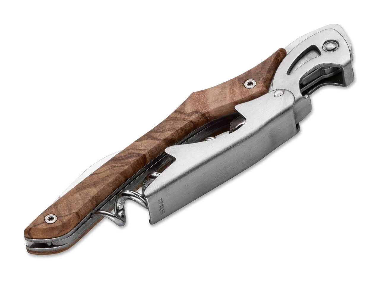 Eine gute Flasche Wein stilvoll mit einem hochwertigen Sommeliermesser zu öffnen ist eine echte Freude. Das neue Sommeliermessermodell wird in Handarbeit in Italien gefertigt und liegt dank der ergonomischen Formgebung sicher und ausgewogen in der Hand. Das professionelle Kellnerbesteck verfügt über optimale Stütz- und Hebelabstände und ist mit einem langen Korkenzieher und kleiner Klinge ausgestattet.