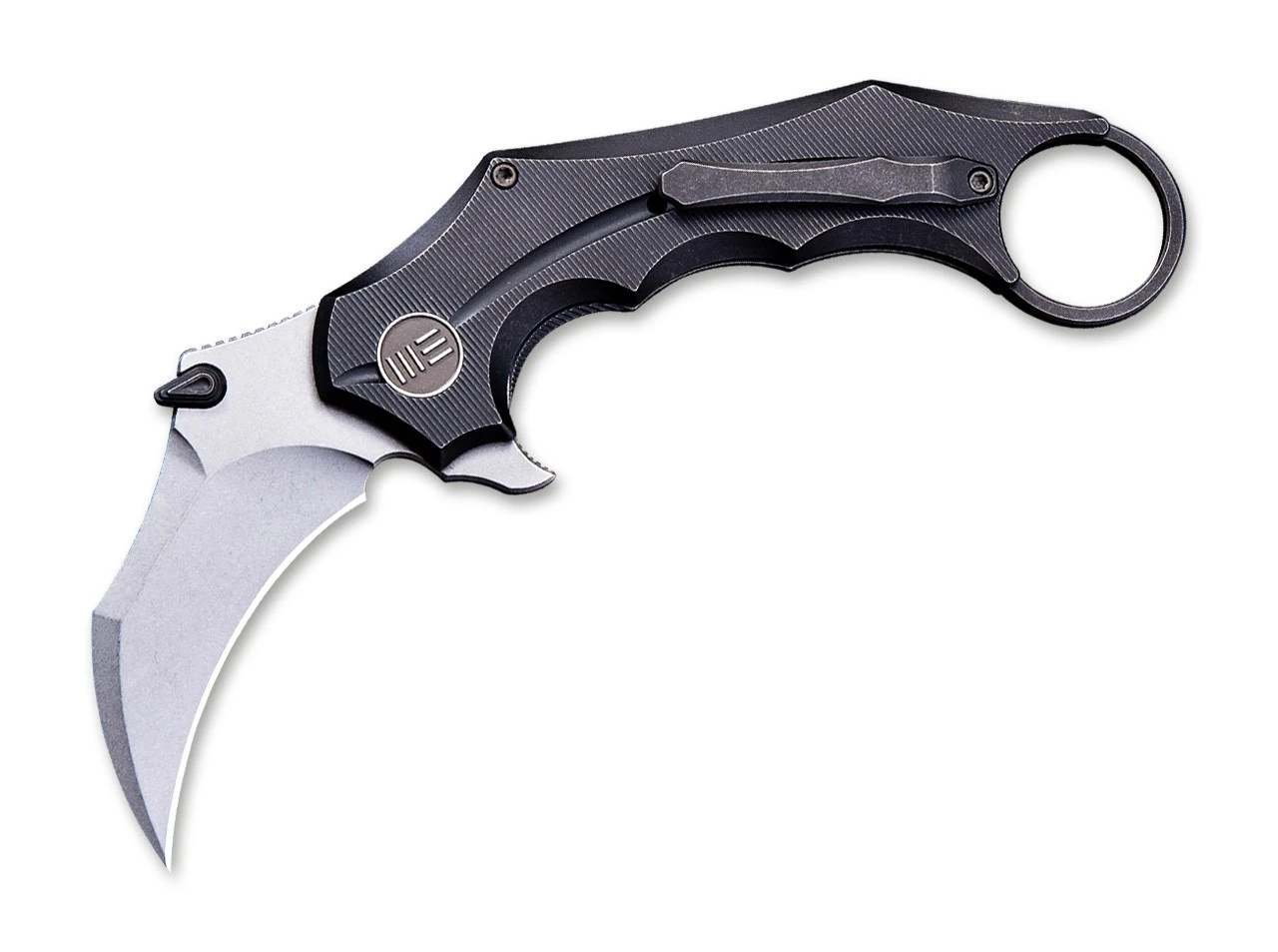 Das WE Knife Incisor ist ein Titan–Framelock Kerambit mit einer Klinge aus CPM-S-35VN und keramischem Kugellager. Der Daumenpin fungiert auch als Öffnungshaken für den Taschensaum, zusätzlich steht der Flipper zum manuellen Öffnen zur Verfügung. Mit Titan-Spacer, aus dem Vollen gefrästem Titanclip (umsetzbar l/r) und Titanschrauben.