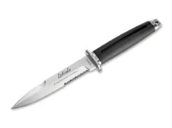 Das Ishida von Tokisu ist ein taktisches Messer mit symmetrischer, einseitig geschliffener Klinge mit Teilwellenschliff. Der fein texturierte Griff ist zur besseren Griffigkeit gummiert und zudem mit einer Fangriemenöse ausgestattet. Die 15 Zentimeter lange Klinge wird aus 7Cr17MoV gefertigt und gibt sich in keiner Einsatzlage eine Blöße. Das Messer wird mit einer stabiler Kunststoff-Scheide und einer dekorativer Magnet-Box ausgeliefert. Es überzeugt mit einer hochwertige Verarbeitung und einem fairem Preis-Leistung Verhältnis.