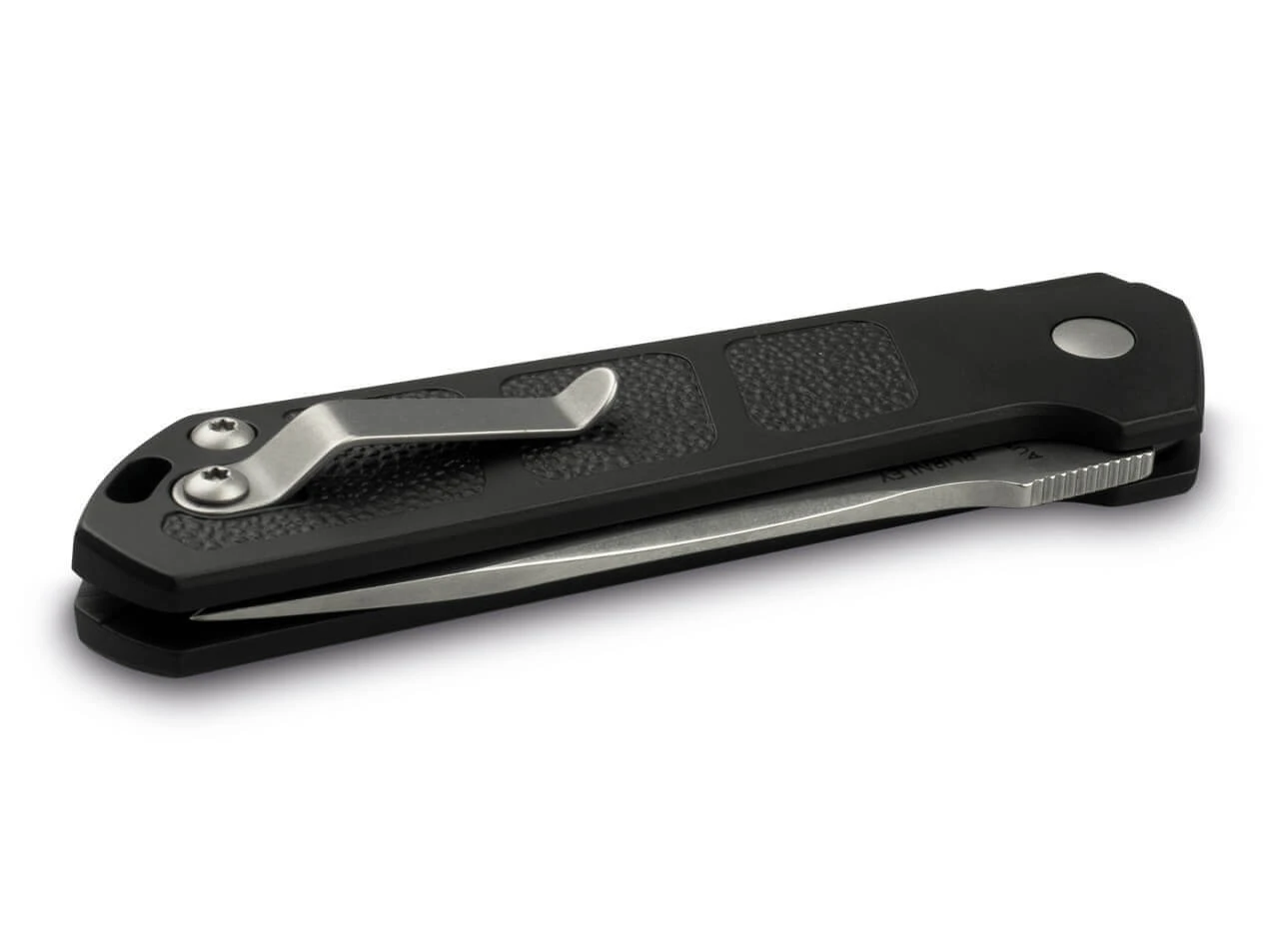 Das von Lucas Burnley entworfene Böker Plus Kihon Auto ist ein überaus robustes und gleichzeitig preisgünstiges Automatikmesser für Einsatz und Alltag. Der amerikanische Messermacher kombiniert auch beim Kihon geschickt japanische Designelemente mit taktischen Elementen. Das Taschenmesser ist mit einer Stonewash-Klinge aus AUS-8 ausgestattet, die an ein klassisches japanisches Schwert erinnert und per Druckknopf geöffnet wird. Die schwarzen Griffschalen bestehen aus leichtgewichtigem Aluminium und sind mit texturierten Flächen versehen. Mit Fangriemenöse, kurzem Clip (Tip-up) und hochwertigem Nylon-Etui zur Aufbewahrung.