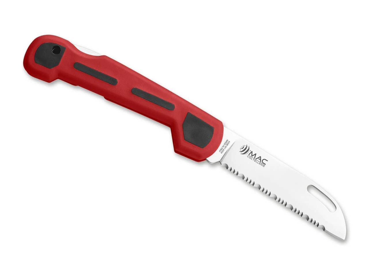 Das leichtgewichtige MAC Skippy ist handliches Taschenmesser für den maritimen EInsatz. Es ist mit einer abgerundeten Klinge aus 4116 ausgestattet, die mit einem Wellenschliff versehen ist. Der stabile Backlock kann auch mit nassen Händen leicht bedient werden. Der Griff besteht aus rotem Kunststoff und ist mit einer Fangriemenöse versehen.