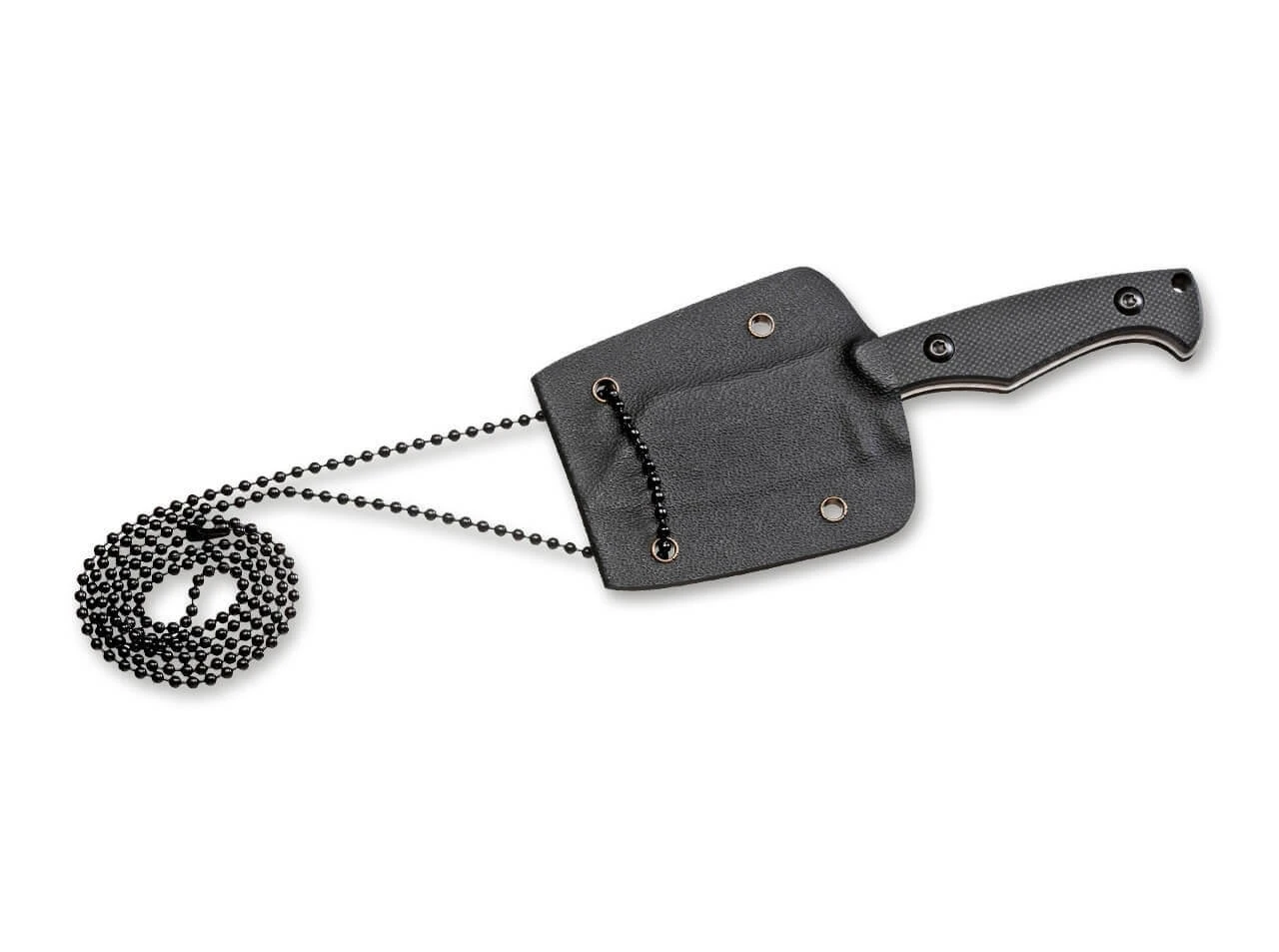 Das Magnum Challenger ist ein kompaktes Neck Knife mit einer stabilen Wharncliffe-Klinge, dass als kleines EDC ebenso geeignet ist wie als handliches Backup. Die schlanke Vollerl-Konstruktion ist sehr flach und kompakt konstruiert und bietet einen überragenden Tragekomfort. Die teilbeschichtete Klinge aus rostfreiem 440A ist mit einem markanten Two-Tone-Finish versehen, die Griffschalen werden aus griffigem G10 gefertigt. Auslieferung mit praktischer Kydex-Scheide und Kugelkette.