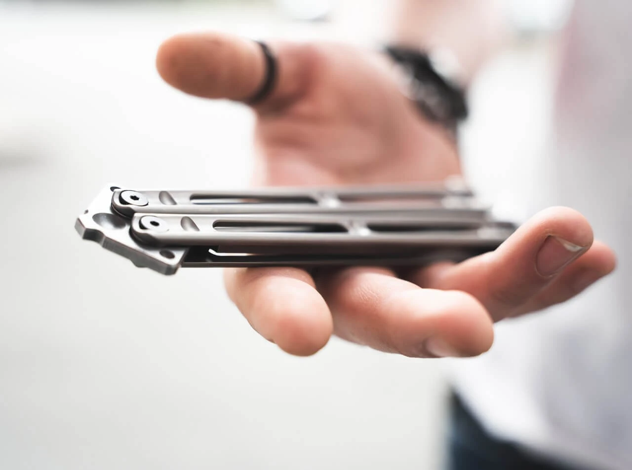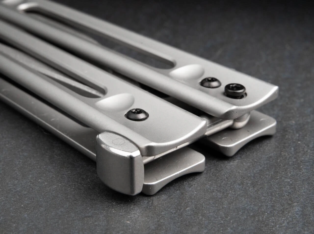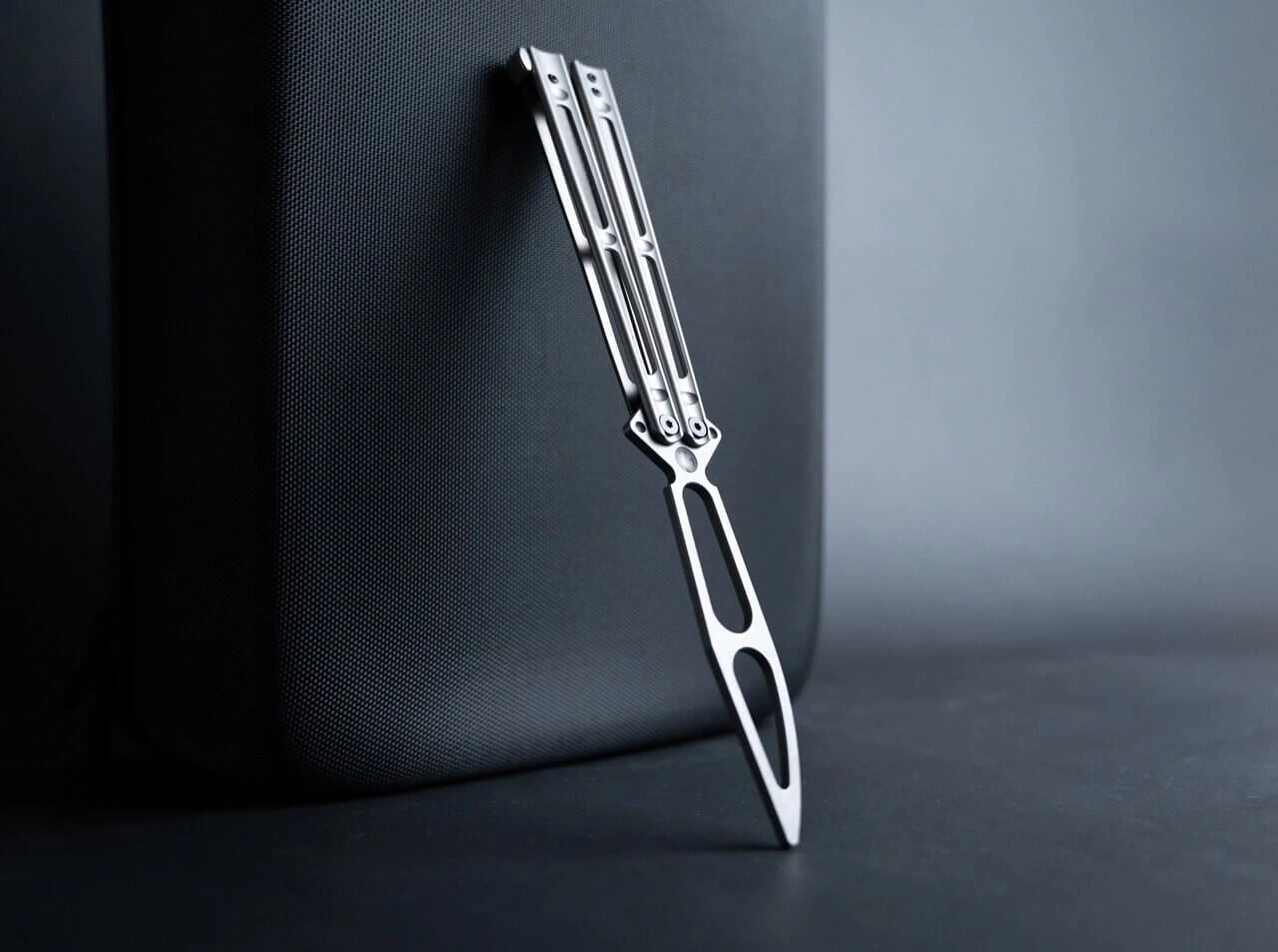 Der Böker Plus Papillon Trainer entspricht der Konstruktion des echten Balisong-Messers, ist aber anstelle einer echten Klinge mit einem stumpfen Dummy ausgestattet. Der Trainer ist wie das Original mit skelettierten Edelstahl-Griffhälften bestückt, die mit einem matten Beadblast-Finish versehen sind. Das auch als Butterfly-Messer bekannte Balisong verdankt seinen Namen dem einfachen Faltmechanismus des geteilten Griffs, der deutlich weniger anfällig für Verschmutzungen ist als andere Mechanismen. Die kugelgelagerte Clippoint-Klinge des Trainers wird aus 420 Stahl gefertigt und ist mit einem ebenfalls matten Stonewash-Finish versehen. Der an den Kanten leicht gerundete Dummy ist zur direkten Unterscheidung von scharf geschliffenen Klingen und zur Gewichtsangleichung an das Original mit großzügigen Aussparungen versehen. Die ausgeprägte Fehlschärfe unterstreicht den taktischen Charakter des Trainingsgeräts. Mit hochwertigem Nylon-Etui zur Aufbewahrung.
