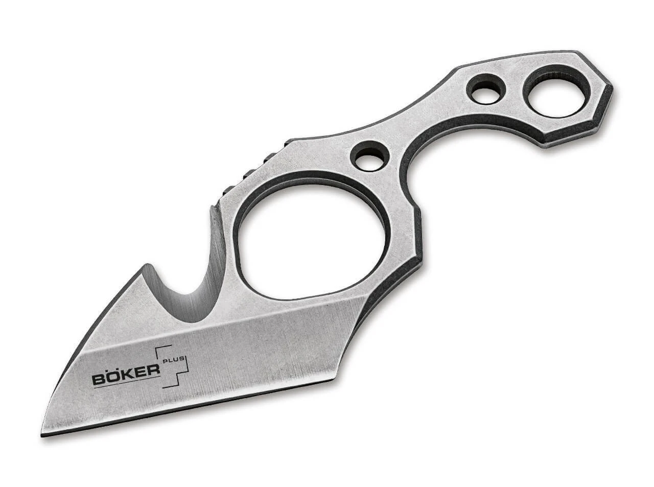 Das von Simon Frömel entworfene Böker Plus Rescue Kiridashi überzeugt als leichtes Backup-Messer für den Notfall. Die angewinkelt abgesetzte Klinge mit gerader Schneide ist beidseitig geschliffen und kann dank der speziellen Griffhaltung sehr präzise eingesetzt werden. Die ausgeprägten Riffelungen im Bereich der Daumenauflage sorgen zudem für mehr Stabilität und Sicherheit beim Schneiden. Die skelettierte Ganzstahlkonstruktion aus 440C ist zusätzlich mit einem praxistauglichen Gurtschneider ausgestattet. Durch seine kompakten Abmaße und das geringe Gewicht eignet sich das Rescue Kiridashi für die unterschiedlichsten Trageweisen, wobei die Kydexscheide nicht nur mit dem beiliegenden Adapter am Gürtel befestigt werden kann, sondern mit der Kugelkette auch die Verwendung als Neck Knife möglich ist. Mit Fangriemenöse.