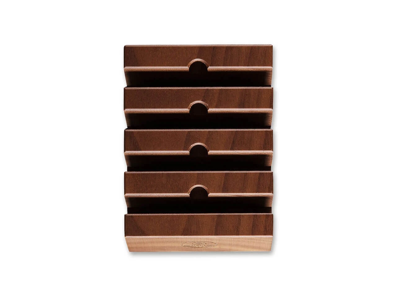 Die perfekte Aufbewahrung für bis zu vier HORL Schleifscheiben. Gefertigt in Deutschland aus massiven Nussbaumholz.