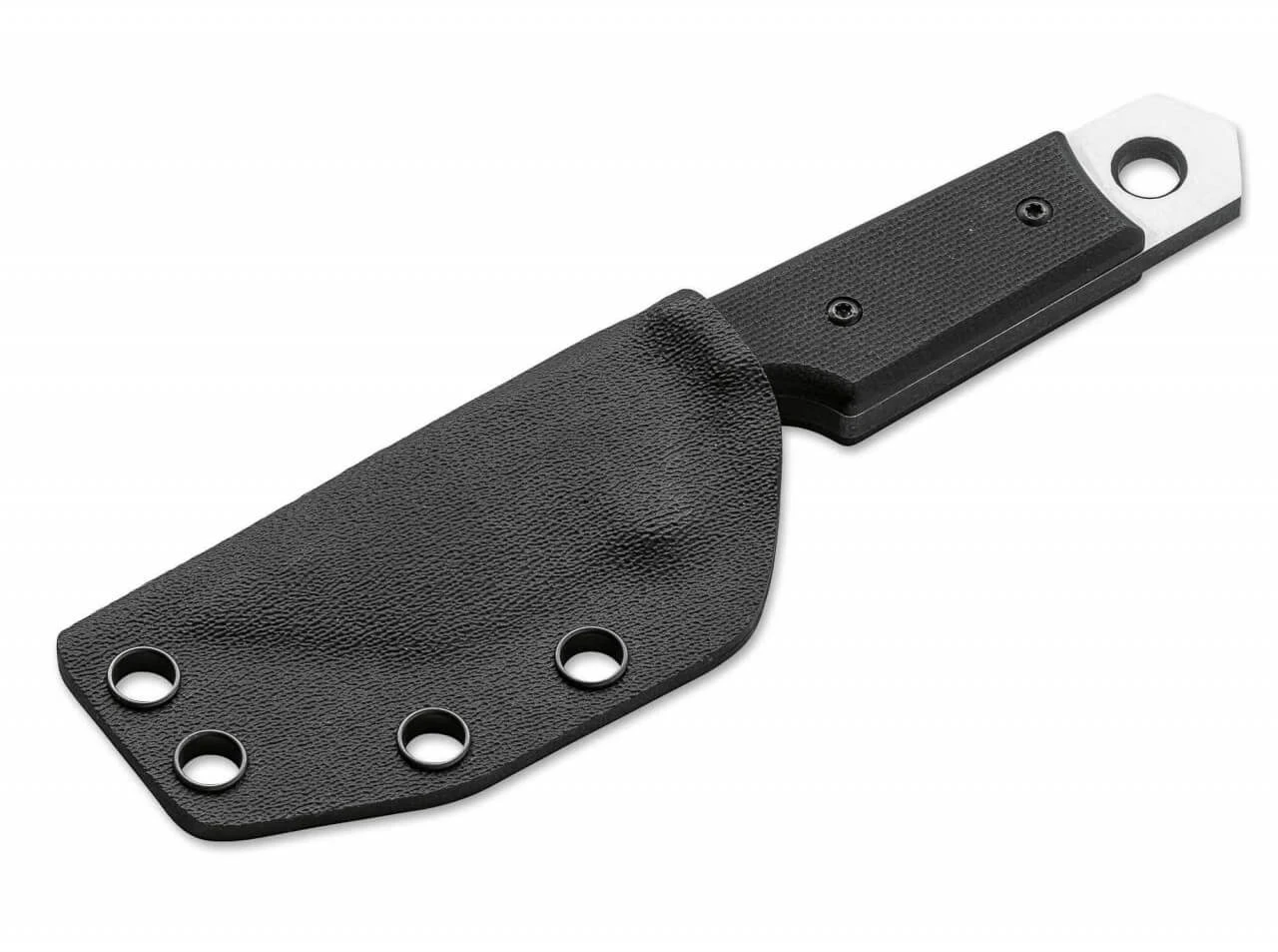 Sam Eddleman aus Washington hat uns mit seinem Tantodashi auf Anhieb begeistert. Das robuste Neck Knife besitzt eine starke Klinge aus 440C, die in ihrer Form Elemente des Tanto und des Kiridashi in sich vereint und diese durch das Two-Tone-Finish hervorhebt. Die durch den Schliff bedingte Geometrie bürgt für eine außerordentliche Stabilität der Klingenspitze. Die Griffbeschalung aus G10 und die tiefe Zeigefingermulde sorgen auch bei der kompakten Größe für eine außerordentlich gute und sichere Handlage. Lieferung mit Kydexscheide und Kugelkette.