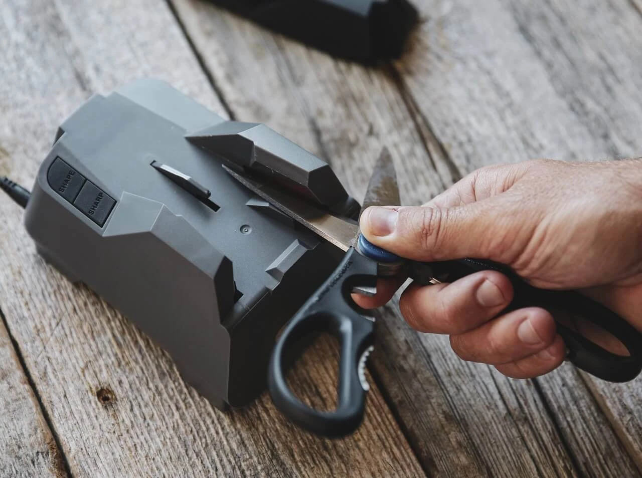 Der Work Sharp Culinary E2 ist ein überaus bedienungsfreundlicher Messerschärfer, der auch ohne Vorkenntnisse hervorragende Ergebnisse ermöglicht. Die Klingenführung gibt den Schleifwinkel fest vor und die voreingestellte Geschwindigkeit macht jegliche Einstellung oder Justierung überflüssig. Zudem gibt es nur eine Sorte Schleifscheiben. Ein kompakter Messerschärfer für die Küche, der in jeder Schublade verstaut werden kann und dennoch als optischer Hingucker fungiert. Der Schleifwinkel von 20 Grad ermöglicht optimale Resultate für Scheren und Kochmesser.